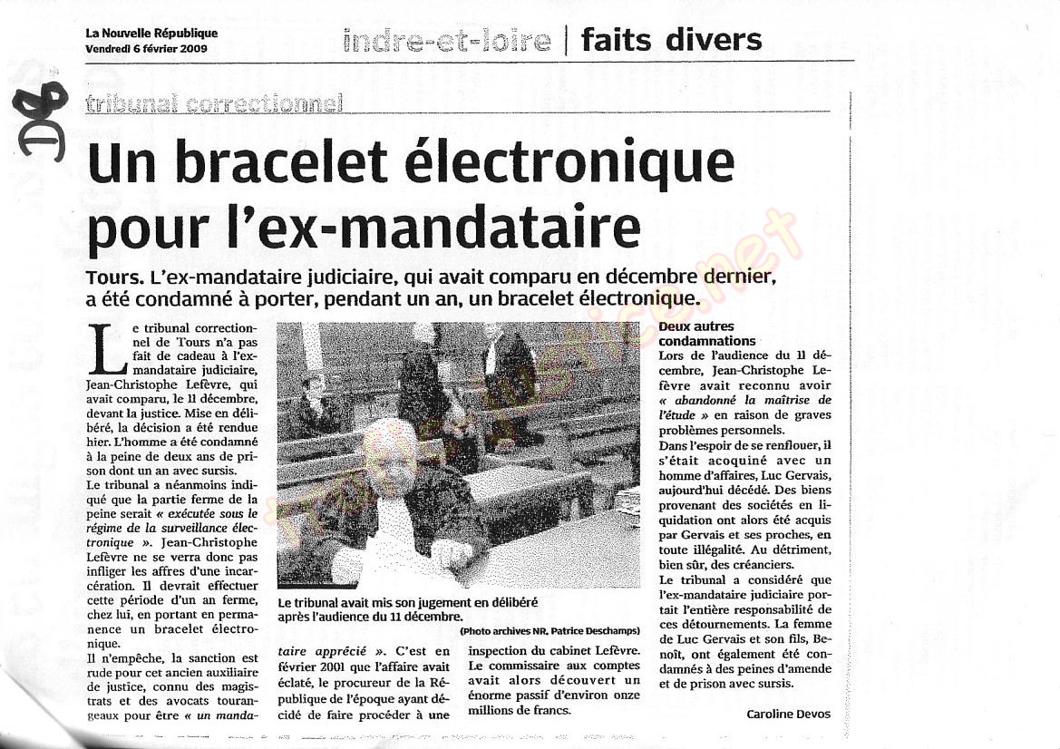 « Un bracelet électronique pour l'ex-mandataire. Lefèvre . passif onze millions de francs. des biens .acquis en toute illégalité .(D8)
