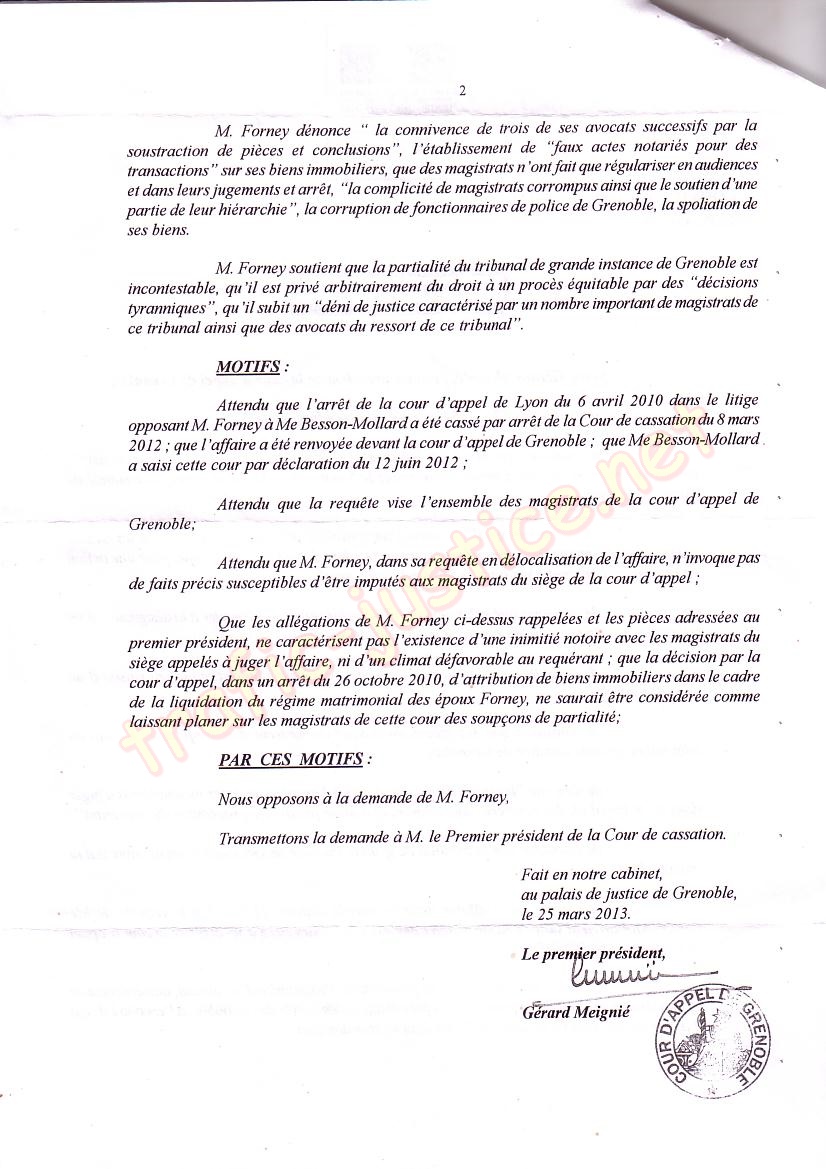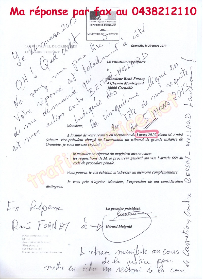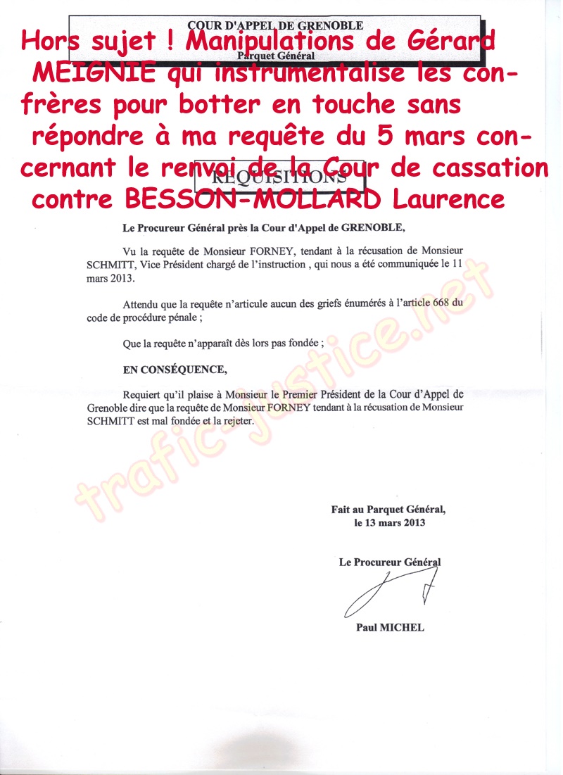 Copies (Identique à celle devant le président du TGI du 27/02/13, communiquées à la Cour d'appel 1ère ch. Civile RG : 12/02591 - renvoi après cassation, à Messieurs le Procureur de la République de Grenoble COQUILLAT Jean-Yves et le Procureur Général de Grenoble pour application de l'art. 43 du CPP.)
