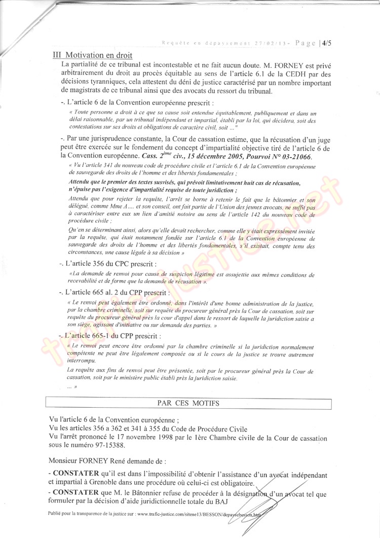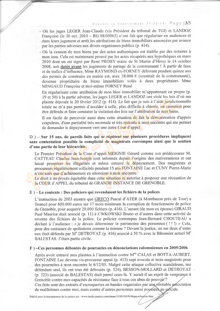 Publié pour la transparence de la justice sur : www.trafic-justice.com/sitene13/BESSON/depaysebesson.htm