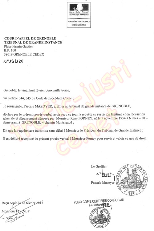 - CONSTATER que cette requête avec ses pièces montrent que le TGI de Grenoble n'est ni indépendant, ni impartial.