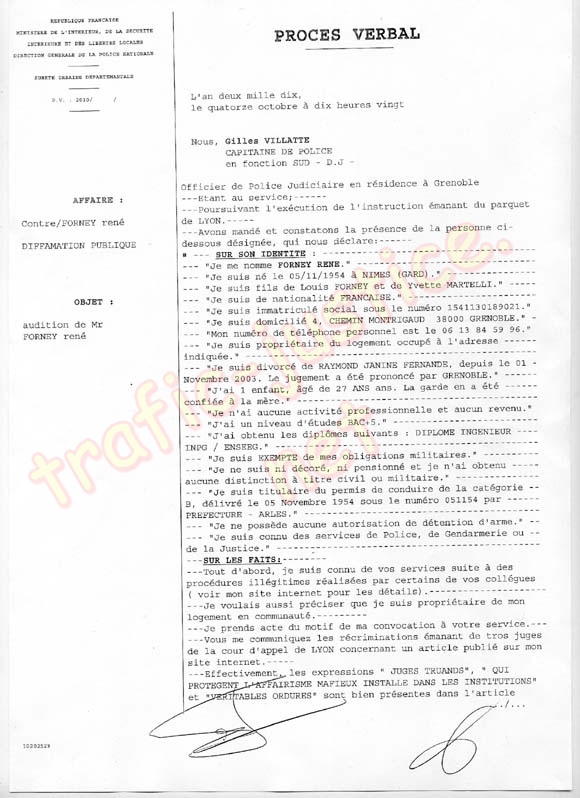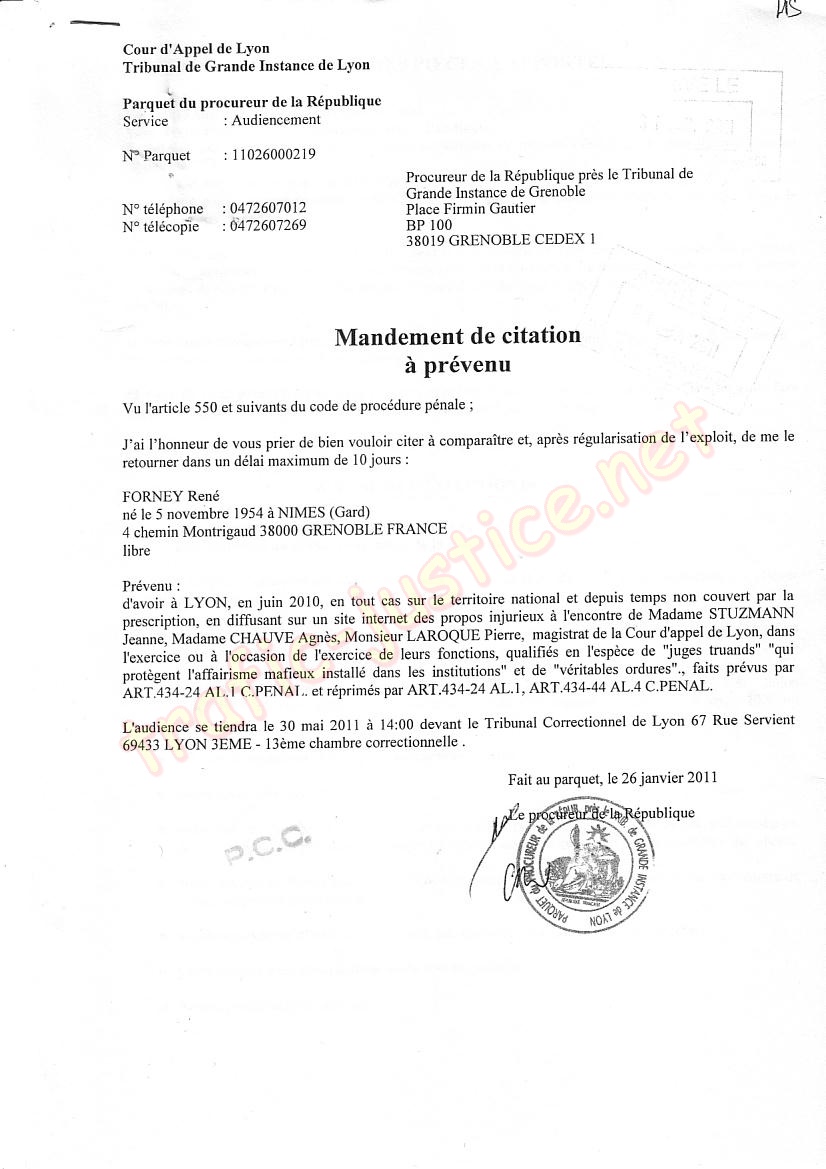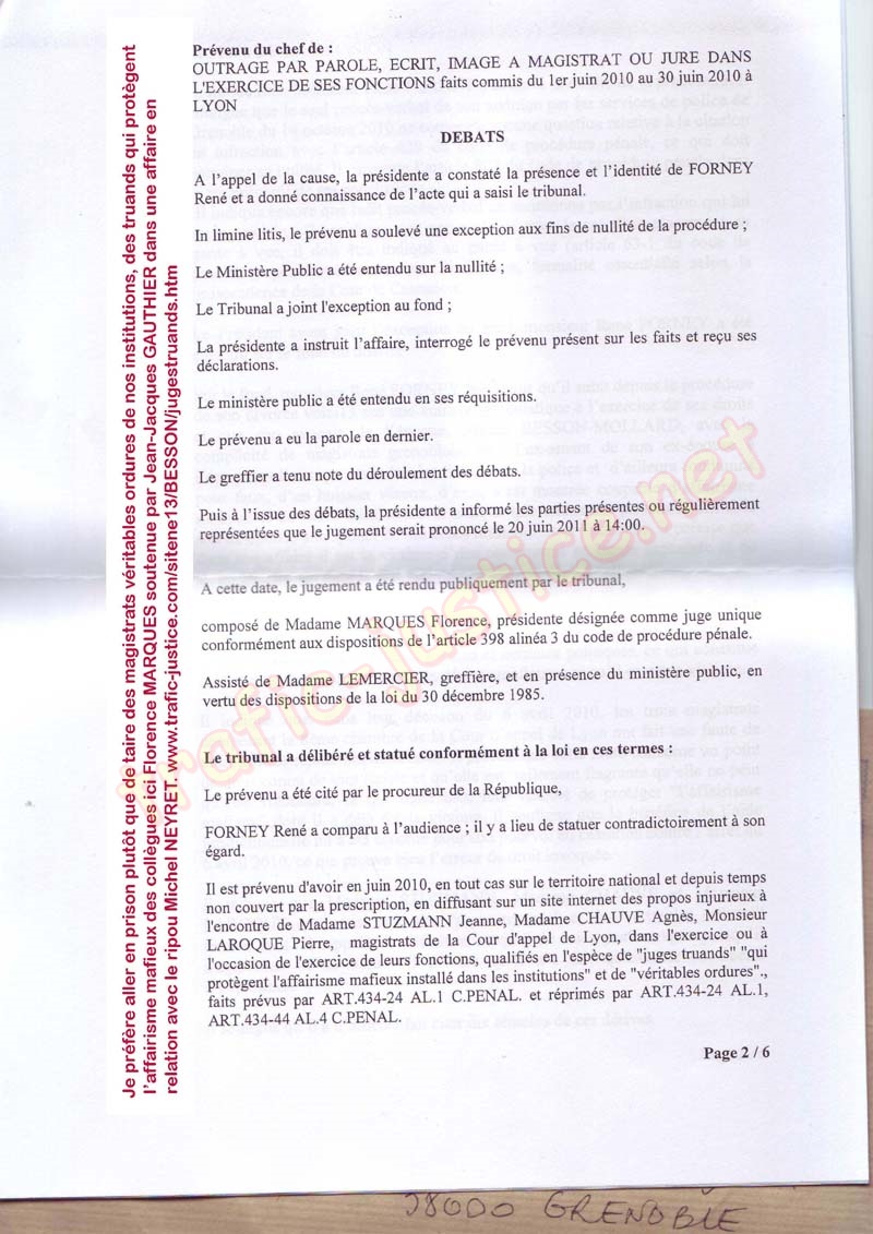 --Vous me communiquez les récriminations émanant de tros juges de la cour d'appel de LYON concernant un article publié sur mon site internet.