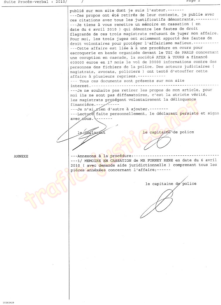Cette affaire est liée à à une procédure en cours pour escroquerie en bande organisée devant le TGI de PARIS concernant une coruption en cascade, la société ATER à TOURS a financé 600000 euros en 17 mois le vol de 20000 informations contre des personnes des fichiers de la police. Des acteurs judiciaires magistrats, avocats, policiers) ont tenté d'etouffer cette affaire à plusieurs reprises.