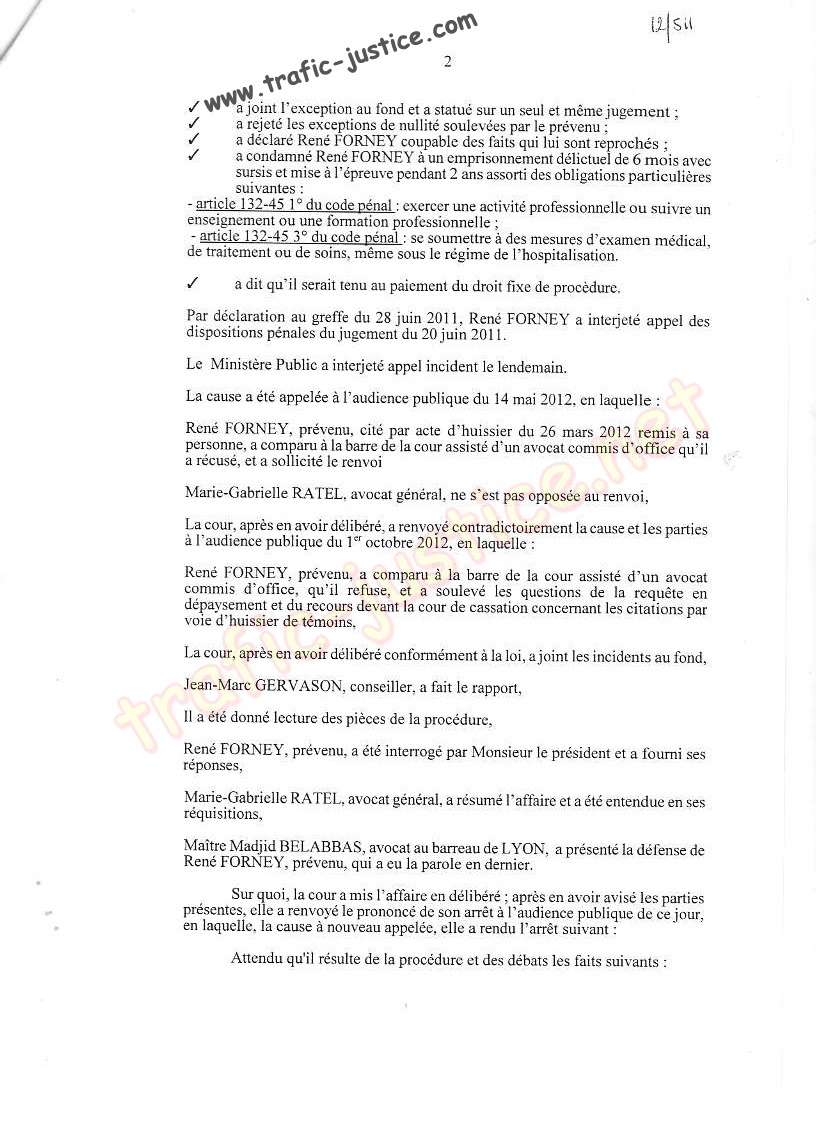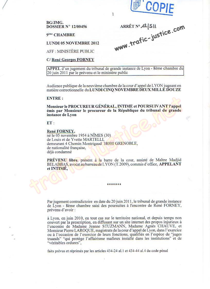 Vous avez eu en main, un dossier tamponné au 10 mai 2012 par la cour. Vous avez plaidé contre moi à l'audience, et j'ai été relaxé.