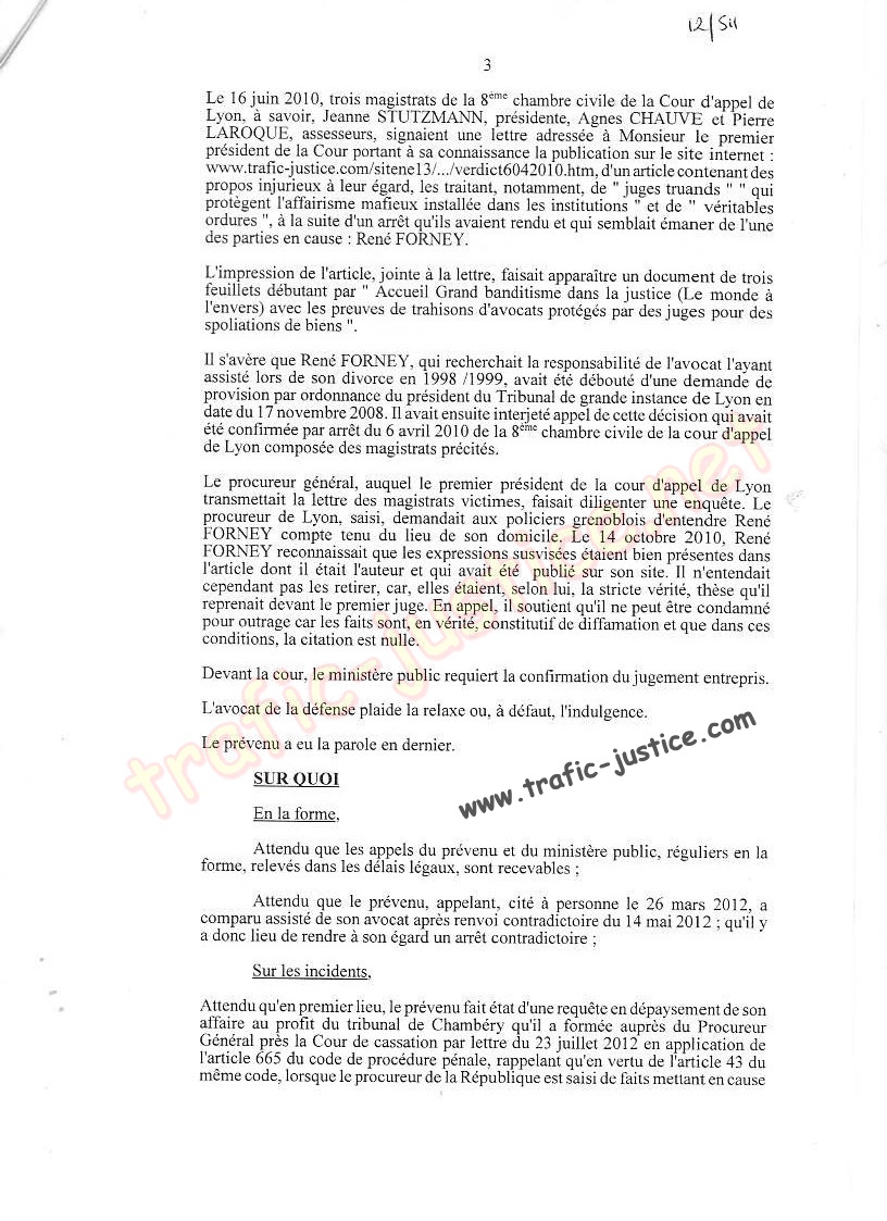 Vous savez que ce dossier prouve des escroqueries en bandes organisées, des trafics d'influences, de la corruption, du recel, des faux, des entraves au cours de la justice. Entre autres, vous savez que le juge Pierre LAROQUE, qui a refusé de juger, partageait les mêmes locaux avec Mme Yolande ROGNARD ex juge à Grenoble qui a accepté que mon avoué Jean CALAS retire 23 pièces essentielles de ma défense avant l'audience . pour faciliter ma spoliation totale.