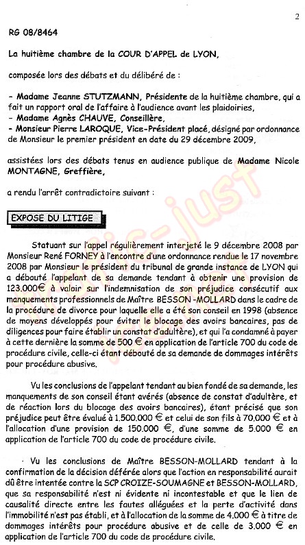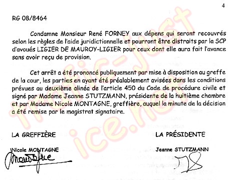 | Mon avoué RAHON Alain, hypocrite, est absent à l'audience du 2 mars 2010 - Verdict ci-dessous du 6 avril 2010 |