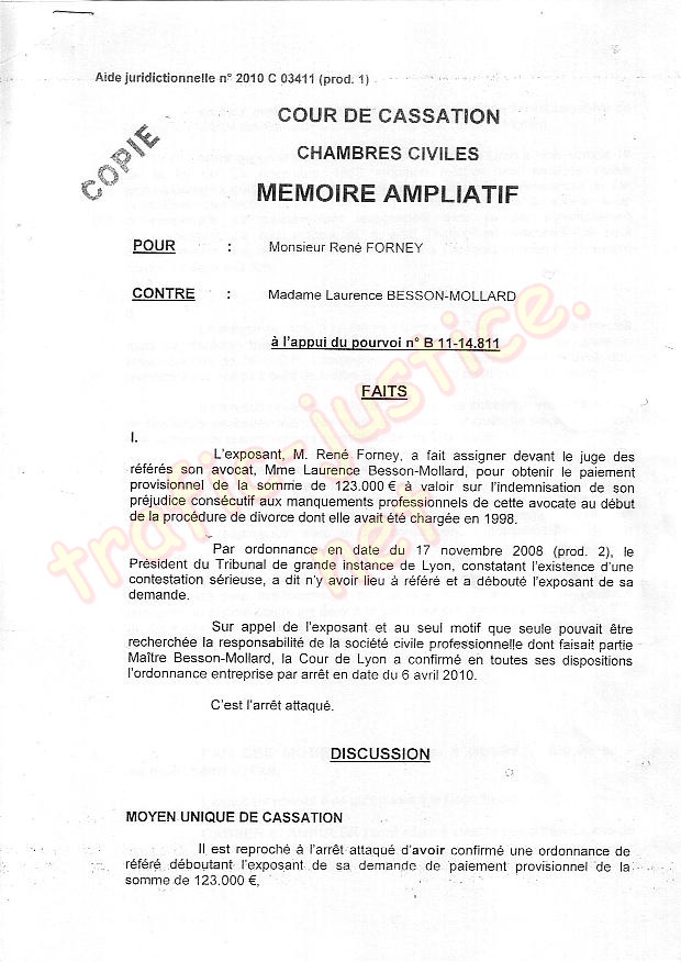 | L'avoué adverse se fait rémunérer sa corruption. (Tel René FORNEY. 0763 156646) |
