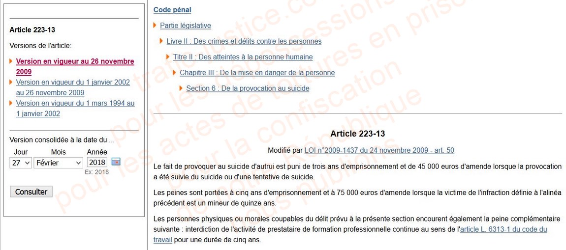 Articles du code pénal en cause :... 121-4a121-7 ,223-6 , 223-13, 226-15 , 432-1 , 432-4 ,.., 432-11,. 434-4 ,