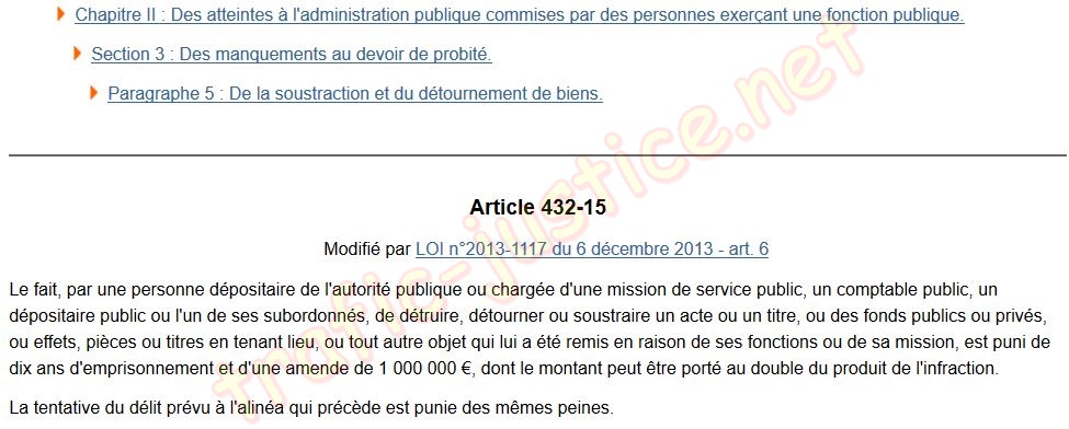 Procureurs et vices procureurs de Grenoble informés ont tout fait pour enterrer mes preuves malgré des suicides suspects dénoncés ! ! ! Articles du code pénal en cause: , 432-1 , 432-4 , 432-5,....., 432-11, 432-15, .... 434-4 , ..... Prévaricateur Applications : 1 , 2 , 3 , 4 , 5 , 6 , 7 , 8 , 9 , 10 , 11 , 12 , 13 , 14 , 15 , 16 , 17 , 18 , 19 , 20 , 21 , 22 , 23 , 24 , 25 , 26 , Applications : http://www.victime-ripou.net/victime-en-prison.htm |