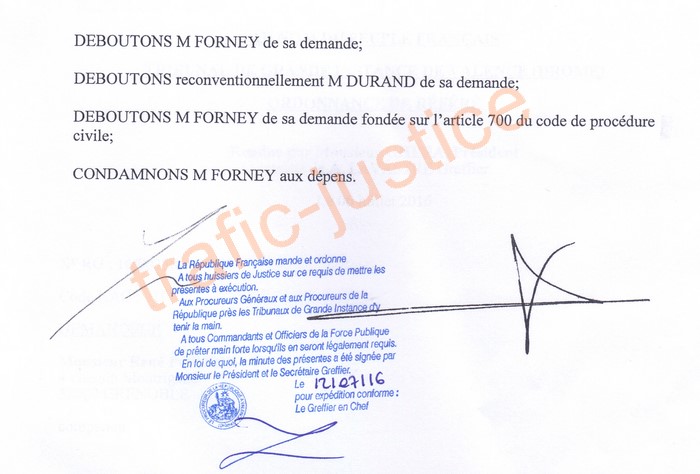 Condamner Jacques DURAND à payer à M. FORNEY la somme de 1.000 euros au titre de l'article 700 du CPC outre les entiers dépens.
