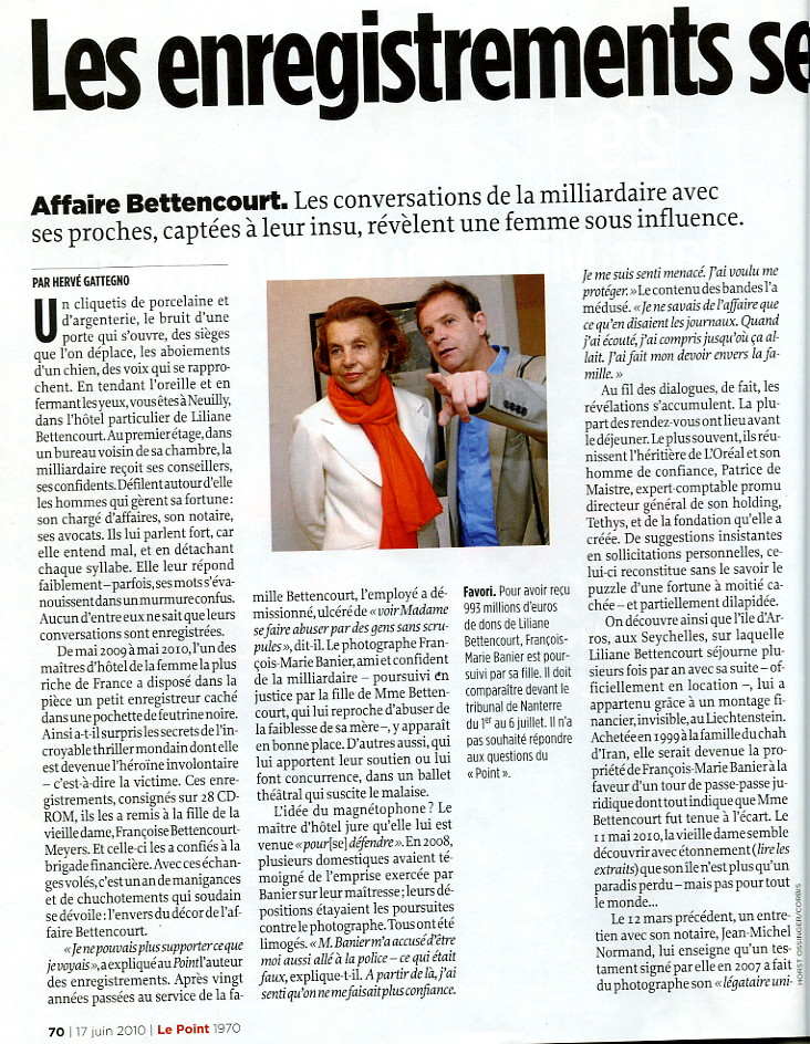 Tous les médias reprennent la suite des informations diffusées par Médiapart sur Internet. (Voir aussi l'exposé vidéo) Pour la fille BETTENCOURT Françoise MEYERS c'est la seule possibilité d'être entendue pour dénoncer la spoliation de sa mère dans un système où la plupart des médias sont sous contrôle de financiers puissants ou de membres de l'Etat choisis par ces financiers |