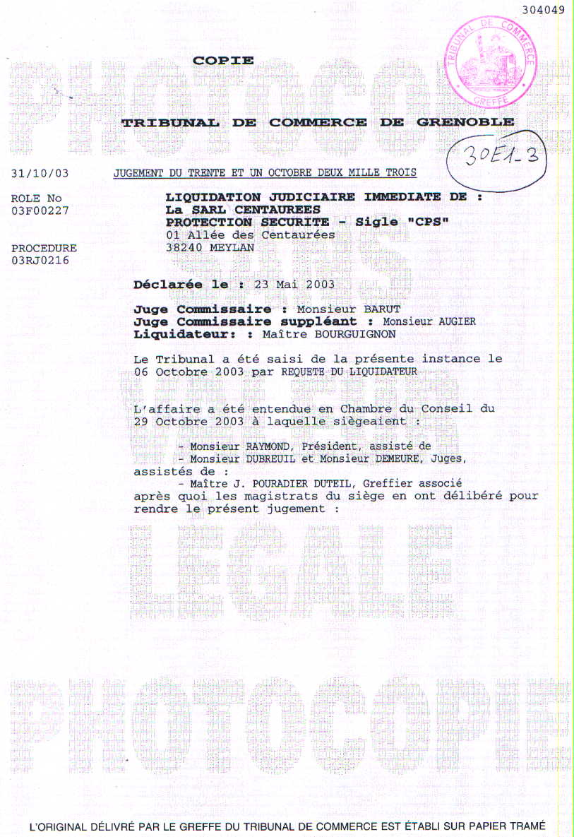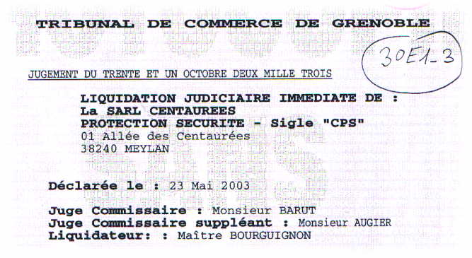 juge commissaire suppléant : M AUGIER,